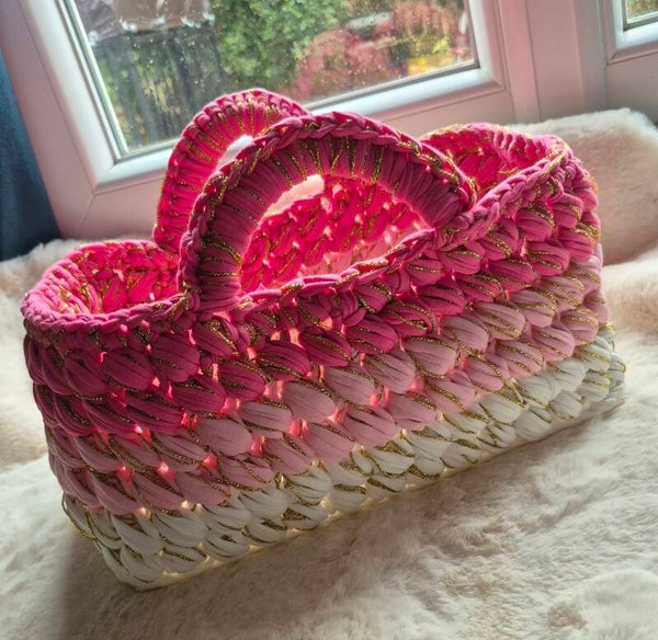 Ajoutez une touche élégante et pratique à votre intérieur avec ce panier de rangement entièrement réalisé à la main au crochet.